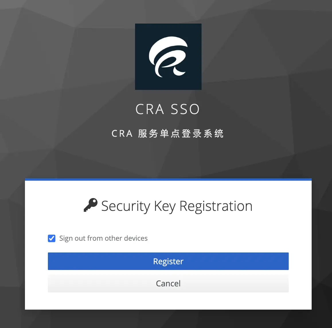 CRA SSO已于近期升级至Keycloak 23,并藉此契机支持了PassKey标准。现在,您可以使用指纹或安全密钥一键登陆您的帐号,而无需输入密码。
